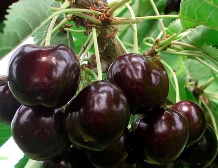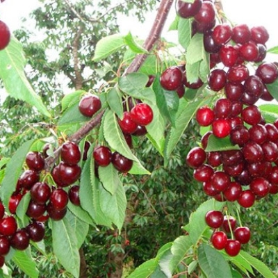 Саженцы черешни Ипуть прекрасно растут деревом средней облиственности и рослости (4-5 м) с широкой кроной. Крупномер плодоносит на 4-5 год от посадки, средняя регулярная урожайность с дерева до 25-50 кг в зависимости от условий и агротехники.. Ягоды собраны в букеты по 3-5 шт,. округлые крупные (5-9 г); вызревая, становятся темно-бордового цвета, сладкого привкуса с тонкой горчинкой. Содержит массу полезных веществ: йод, железо, пектин, витамины С, РР, А и группы В. Хороша в свежем виде и для джемов, компотов, соков.