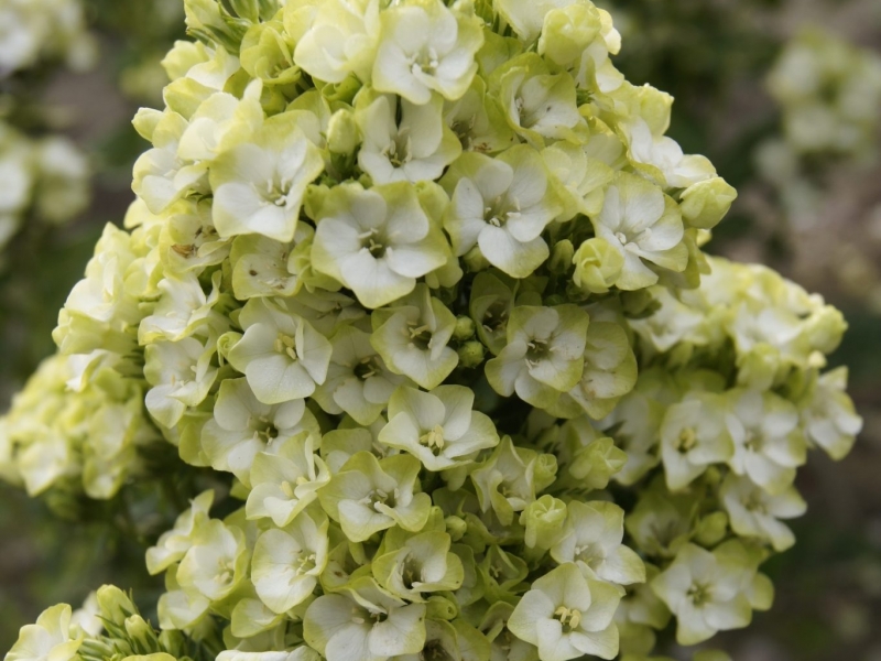 Рассада флокса метельчатого Green Leave будет отлично смотреться у водоемов, зон отдыха и в смешанных посадках. Высота взрослого растения не превышает 80 сантиметров. В июле формируются цветоносы, состоящие из зеленовато-белых звездчатых цветов. Кусты сохраняют декоративность до сентября. Для посадки флокса метельчатого Green Leave следует выбирать хорошо освещенные участки. Лучше всего, если в полуденную жару это место будет защищено от солнца легкой тенью. Уход за растениями заключается в регулярных поливах, рыхлении почвы и удалении сорняков. Земля должна быть удобрена гумусом.