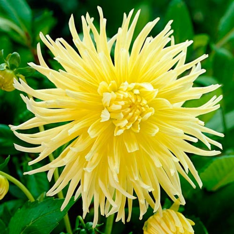 Луковицы Георгины махровой Стар Спектасие (Star Spectacle, Dáhlia variabilis) высаживают в последние дни мая или в первую половину июня, после того как закончатся последние заморозки. Растение любит солнечные участки без сквозняков. Почва нужна питательная, рыхлая, в меру влажная. В сухую погоду нуждается в поливе, но переувлажнения не переносит. Куст георгины Стар Спектасие достигает 90-120 сантиметров в высоту. Цветение длительное, с июля по октябрь, обильное. Цветок крупный, бахромчатый, ярко-желтого цвета с удлиненными лепестками. Иногда окрас лепестков на концах переходит в оранжевый.