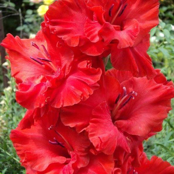Луковицы гладиолуса гибридного Файер Раффл (Fire Ruffle) украсят ваш участок ярким оттенком цветущих бутонов. Растение эффектное, предназначено для высадки в открытом грунте на солнечных участках. Во время цветения требовательно к поливу. Высота этого сорта гладиолуса около 1 метра, средний диаметр цветка – 12 сантиметров. Бутоны яркие, насыщенного красного оттенка, видны издалека. Цветет долго, начиная с июня и заканчивая к сентябрю. Цветок идеально подходит для произрастания на клумбах, желательно на втором плане, чтобы не перебивать вид яркой расцветкой. Хорош в букетах.