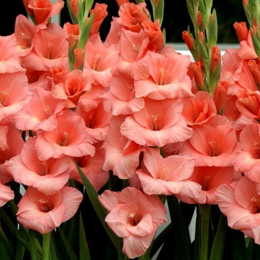 Гладиолус крупноцветковый Фортароза - это великолепное растение с изысканными розовыми цветками, которые украсят ваш сад в июле, августе и сентябре. Высота этого гладиолуса может достигать от 80 до 150 см, что делает его заметным элементом в любом саду. Листья зеленого цвета создают прекрасный контраст с яркими цветками, придавая растению особый шарм.