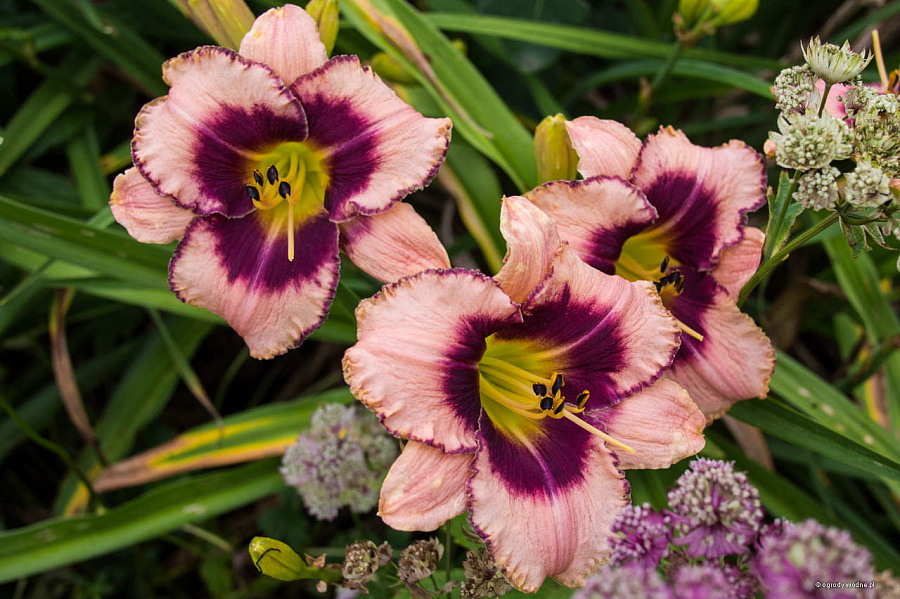 Окраска цветка : Розовая с пурпурным глазком и каймой
