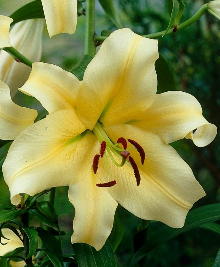 Лилия от-гибрид Ханимун - это настоящая находка для цветоводов, желающих создать в своем саду уютный уголок солнечного счастья. Это растение поражает своей изысканной красотой и неповторимым ароматом. Стебель лилии от-гибрид Ханимун прочный и устойчивый, достигая высоты до 90 см. Ее листья имеют элегантную форму, а цветки медового оттенка с нежно-желтым отливом радуют глаз в течение 2-4 недель.