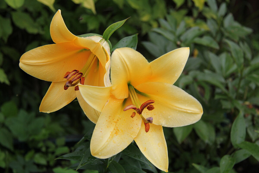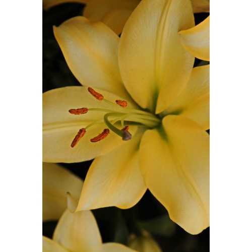 Окраска цветка : желтый с медовым оттенком, оттеняют коричневые пыльники